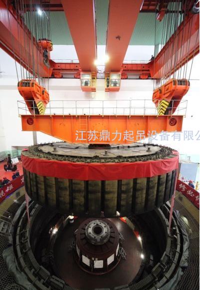 能吊起600噸重量的神器你見過嗎?去年11月陜西某水電站4號發電機轉子起吊。這個轉子自重600噸,加上吊具共653噸,是該廠機組最重的大型部件。在兩臺天車同時發力下,經過3次起吊試驗后,轉子從基坑內緩緩吊出并穩穩的落在安裝間的轉子支墩上,等待工作人員開展下一步檢修工作。